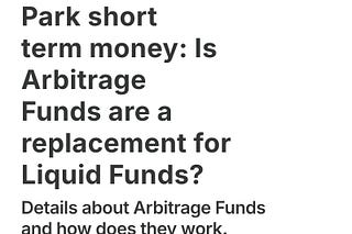 Park short term money: Is Arbitrage Funds are a replacement for Liquid Funds?